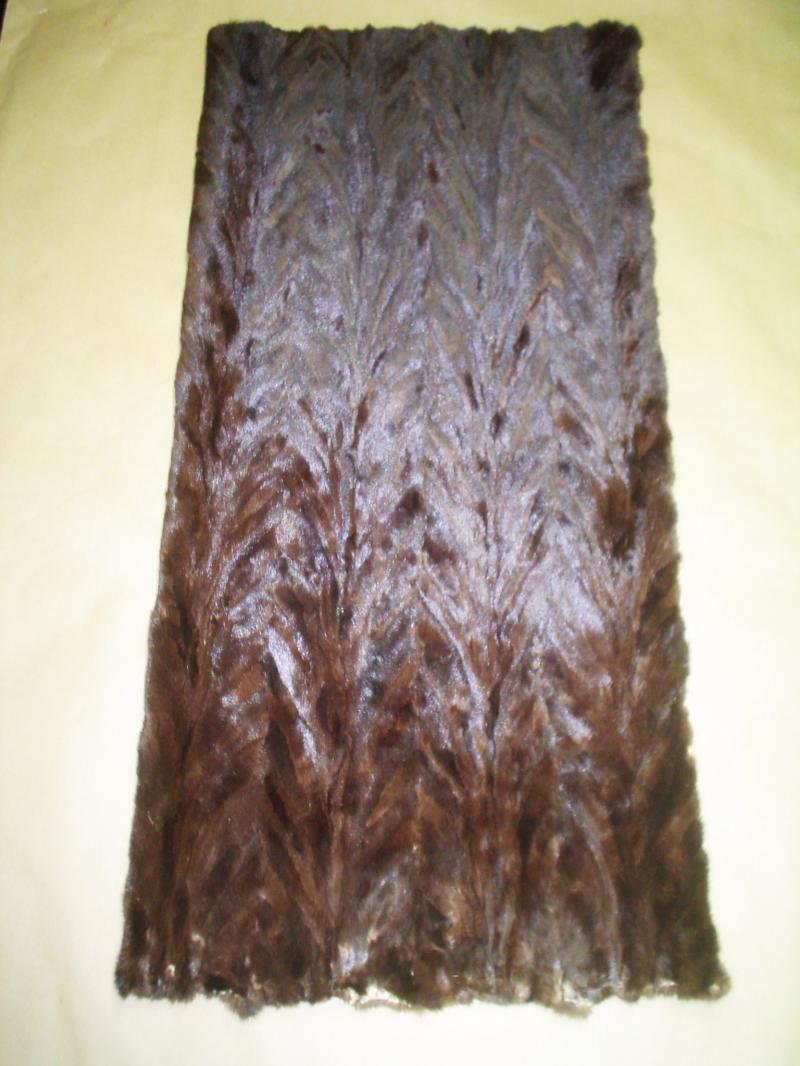 The rear paws are cut in an "atractoid" shape and stiched in chevron pattern as well . Sometimes it is hard to distinguish from the front paws mink. They have long guardhair and rich underfur but not as rich as the front paws. They poduce sharp and well defined garments as well .